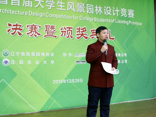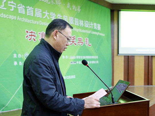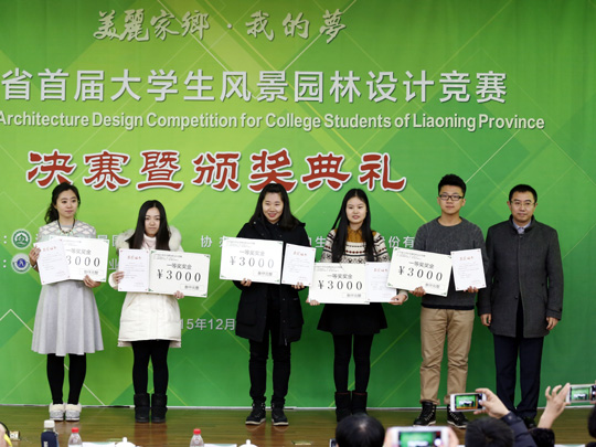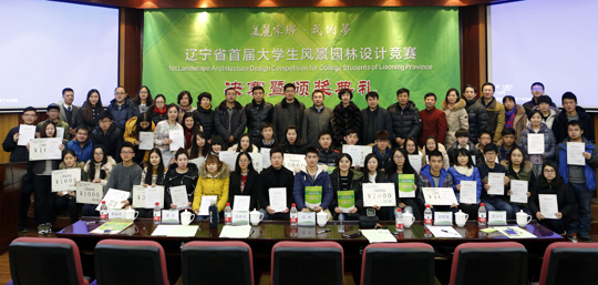 12月26日,辽宁省大学生风景园林设计竞赛,在我校多功能报告厅,成功举行决赛暨颁奖典礼。沈阳农业大学副校长吕杰、辽宁省风景园林协会常务副会长(金柏生态环境股份有限公司董事长)寇有良出席大赛。我校16件作品获奖,4人获“优秀指导教师”奖,冠军(中国)被评为“优秀组织单位”。