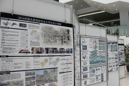 为配合9月11日在我校开幕的中国风景园林学会2014年会,近日,林学院在我校图书馆一楼中庭展出了65幅2014中国风景园林学会大学生设计竞赛作品。这些作品充分体现了当代风景园林相关专业大学生的设计能力和学术成果。(党委宣传部)