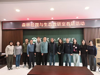 殷有主任领学了加强教师队伍建设的要求,要把健全中国特色教师教育体系这一基础工程打实打牢,要把弘扬尊师重教社会氛围的各项举措落实落细,要将强化师德师风建设这一首要之举、关键之举抓牢抓实。殷有主任还梳理了森林经理与生态教研室的发展历史、师资力量和开设本科生课程等。