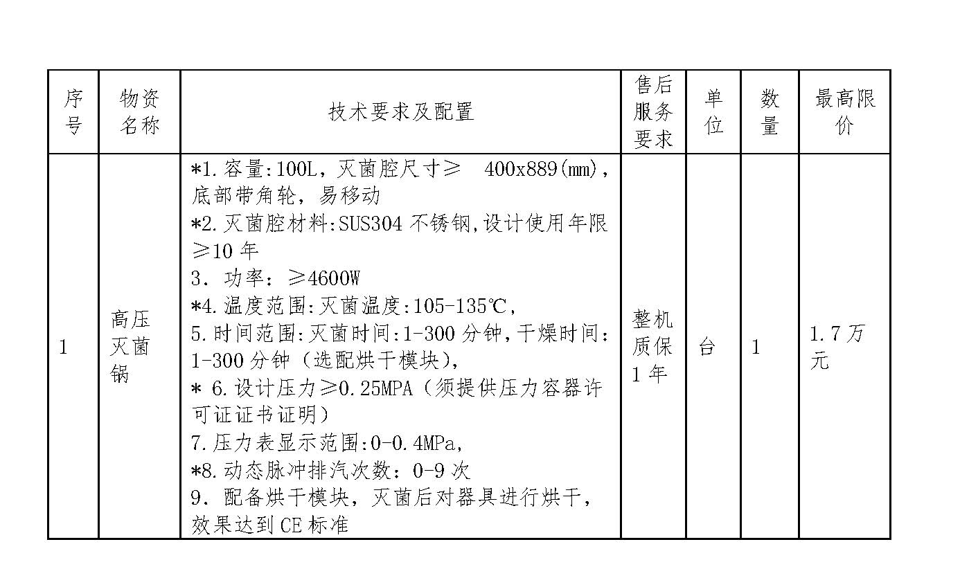 一、项目名称:冠军体育首页高压灭菌锅设备询价采购项目