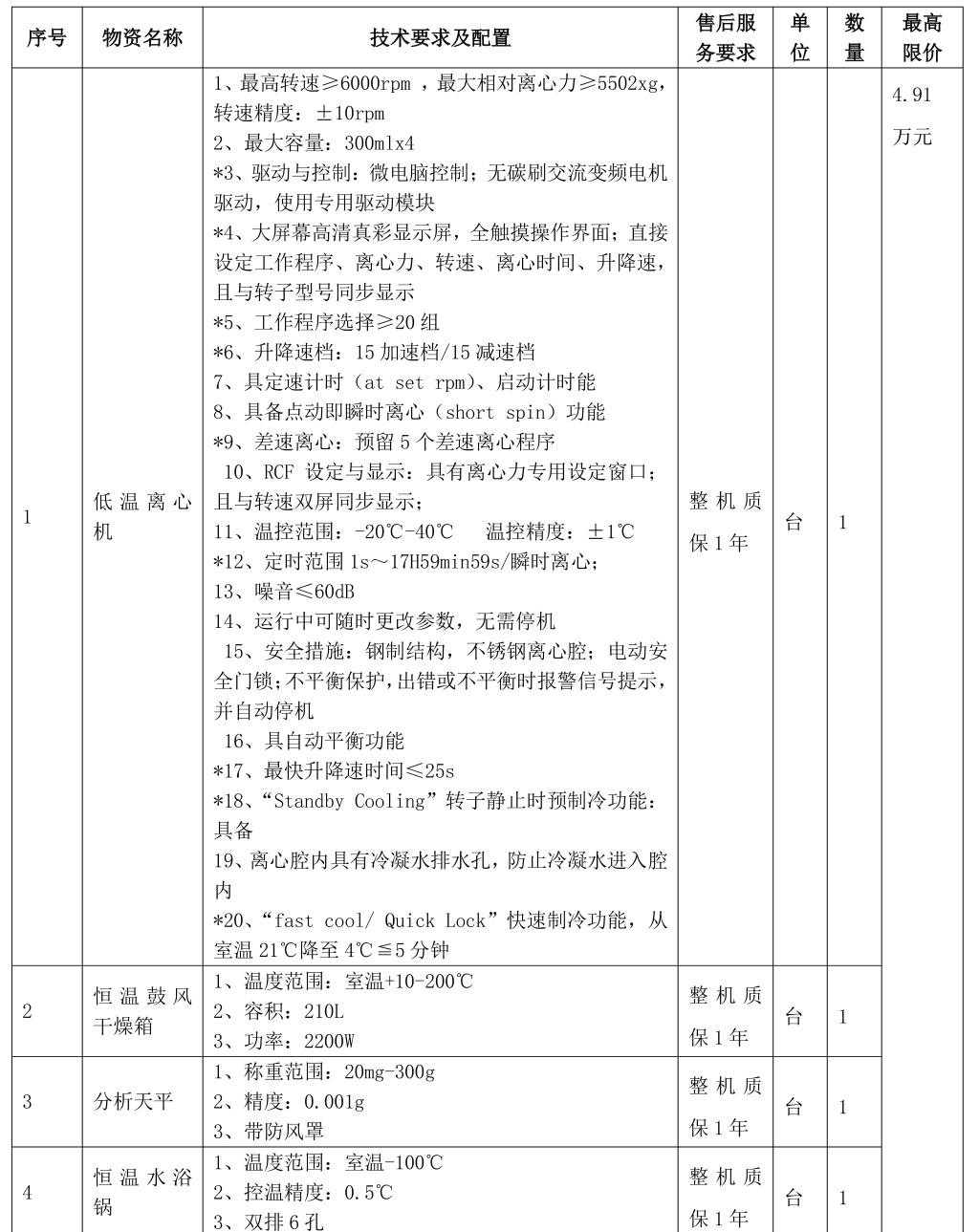 一、项目名称:冠军体育首页低温离心机等设备询价采购项目