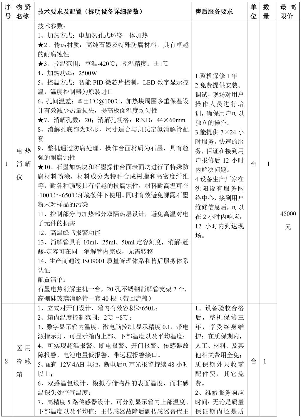 一、项目名称:冠军体育首页电热消解仪等设备项目询价采购