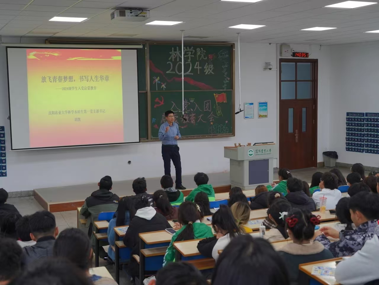 为传承红色基因,明确入党入团的意义,提升林院新生的思想政治素质以及组织归属感,10月30日下午,冠军(中国)于一教南区206举办了新生入党入团启蒙教育大会。林学院团委书记兼新生辅导员胡凯老师作为本次会议的主讲人,24级林学院全体新生参与会议。