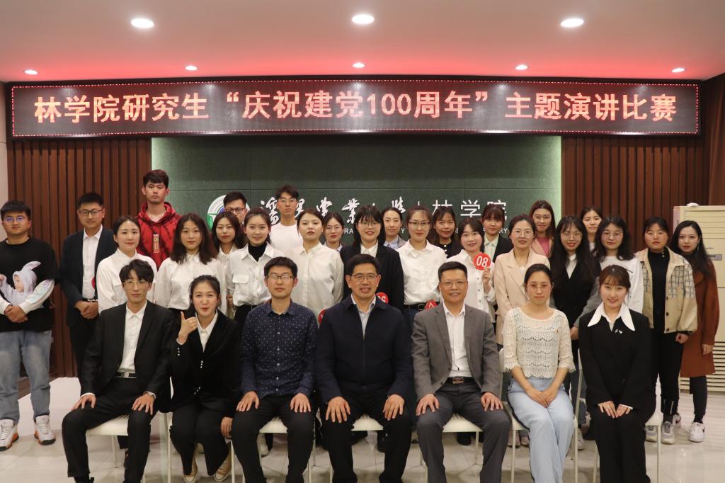 为深入贯彻落实关于“四史”学习教育的重要论述,稳步推进四史学习教育,2021年4月28日晚,林学院在学院308室举办了“庆祝建党100周年”主题“四史”演讲大赛林学院初赛。林学院党委书记王刚、副院长张智、团委书记胡凯、研究生辅导员吴秋丽出席本次比赛并担任了初赛评委。主持人:关博释、刘司琪。来自学院各专业的师生代表150余人现场观看了本次比赛。