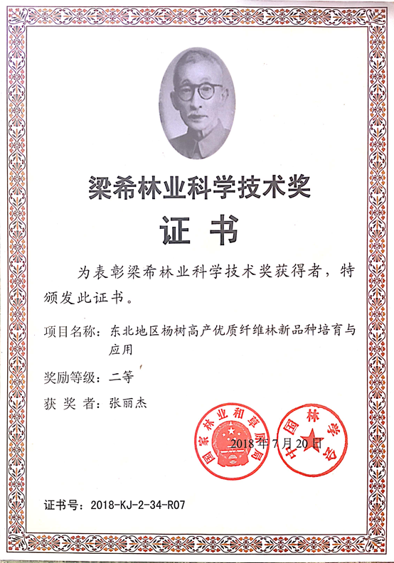 近日获悉,由冠军(中国)张丽杰副教授参加的项目“东北地区杨树高产优质纤维林新品种培育与应用”和“东北核桃楸选育及资源利用研究”分别获梁希林业科学技术二等奖和吉林省政府科技进步二等奖。
