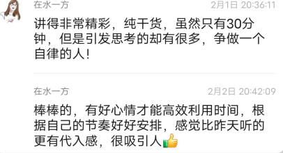 经过四期时间管理的学习,许多同学对时间管理有了新的认识,并且杨宇老师及时分享讨论心得与收获。