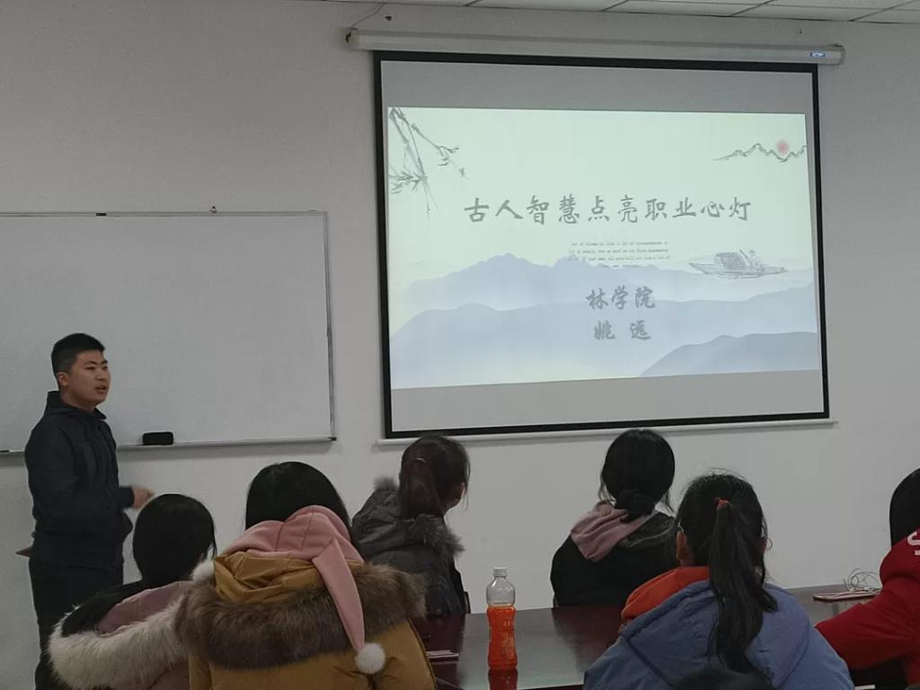 本次讲座由林学院姚远老师主讲,以分析历史人物职业生涯的方式让同学们领略古人在职业方面的智慧。姚远老师从以下两个方面向我们深度剖析了古人智慧对如今就业问题的影响与启发。